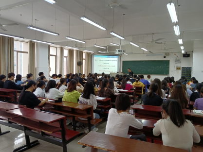 翻译教研室朱红雷老师在英语写作一课中,为提高学生的综合写作能力,以学生的作业为例进行剖析写作注意事项,循循善诱引导学生归纳写作的技巧和特点,在理论联系实践的基础上,提高学生的专业写作能力。