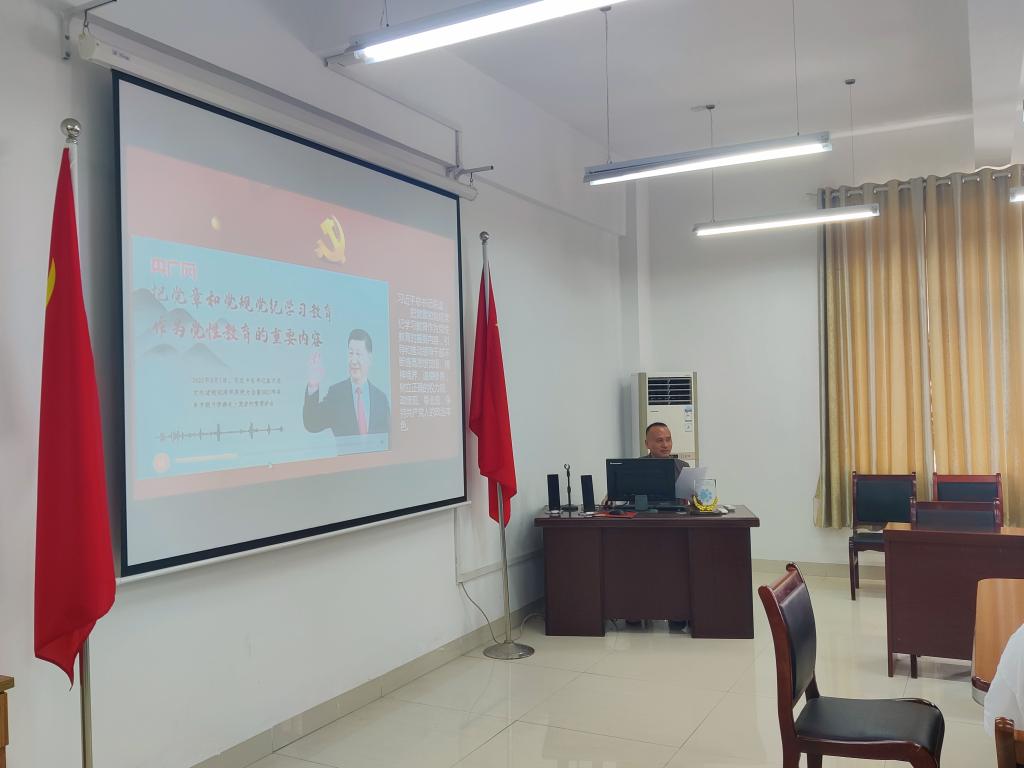 6月11日下午,外国语学院党委书记刘斌在外语楼317讲授专题纪律党课,部分教工党员参加学习。