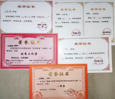 在校期间学习成绩与综合测评成绩连续三年在专业名列前茅,曾获校级优秀学生干部2次、三等奖学金2次、院级优秀共青团干1次; 2021年参加“英国上市公司官网365外国语学院商务英语写作大赛”获得一等奖; 2019年获得校图书管理委员会 “优秀工作者”称号。