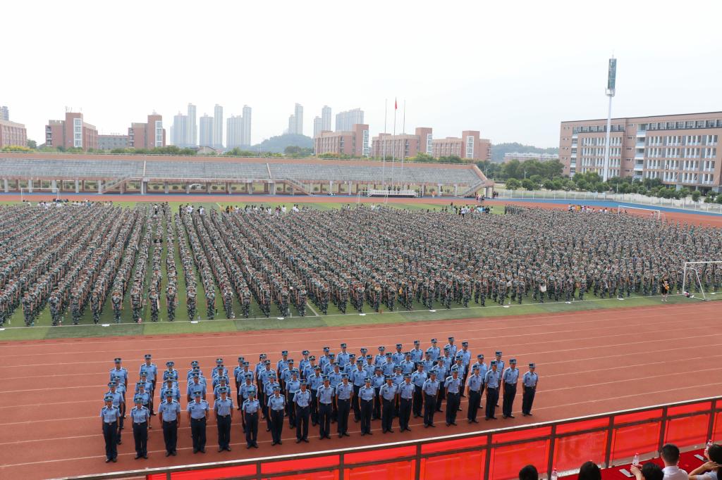 9月15日上午9点,2019级新生军训开训动员大会在北田径运动场举行,党委委员、副校长曹执令出席仪式并宣布2019级新生军训开训,大会武装部部长刘仁能主持。