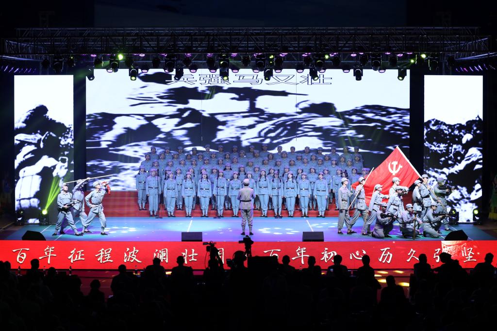 整场晚会15个节目,历时约2小时。以“中国红”为主色调的舞台在璀璨灯光的辉映下流光溢彩,辉煌灿烂。百年来各个时代的经典曲目一首接一首,唱出了浓浓的爱国情怀,徐徐展开了中国共产党建党百年来波澜壮阔的历史画卷。晚会现场气氛热烈感人,在慷慨激昂的歌声中,广大师生理想信念愈发坚定,奋进的脚步愈发铿锵。(宣传部 文/彭婷 图/刘歆昱)