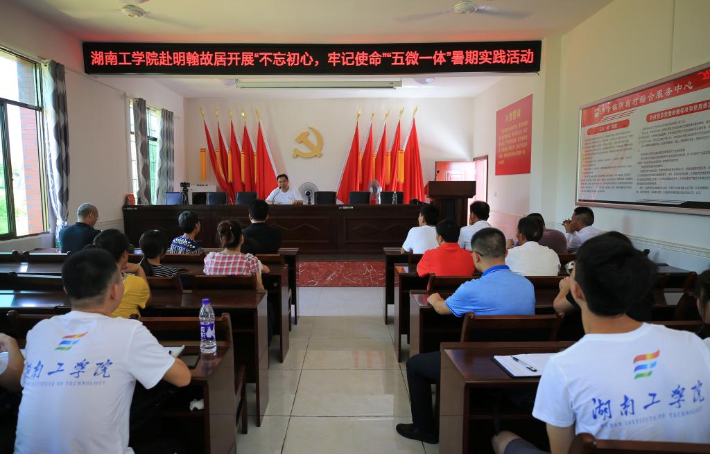 8月21-28日,英国上市公司官网365赴衡阳市衡阳县明翰村开展“五微一体”的“不忘初心,牢记使命”主题教育暑期社会实践团在指导老师马克思主义学院肖中云老师、学校党委宣传部伍小乐老师和计算机与信息科学学院学工办主任周艳红老师的带领下来到明翰村开展了为期七天的“五微一体”三下乡社会实践活动。28日上午,校党委副书记张平,校党委委员、宣传部长袁勤、计算机与信息科学学院党委书记李立波、学校团委副书记彭国柱冒着酷暑专程看望了团队。
