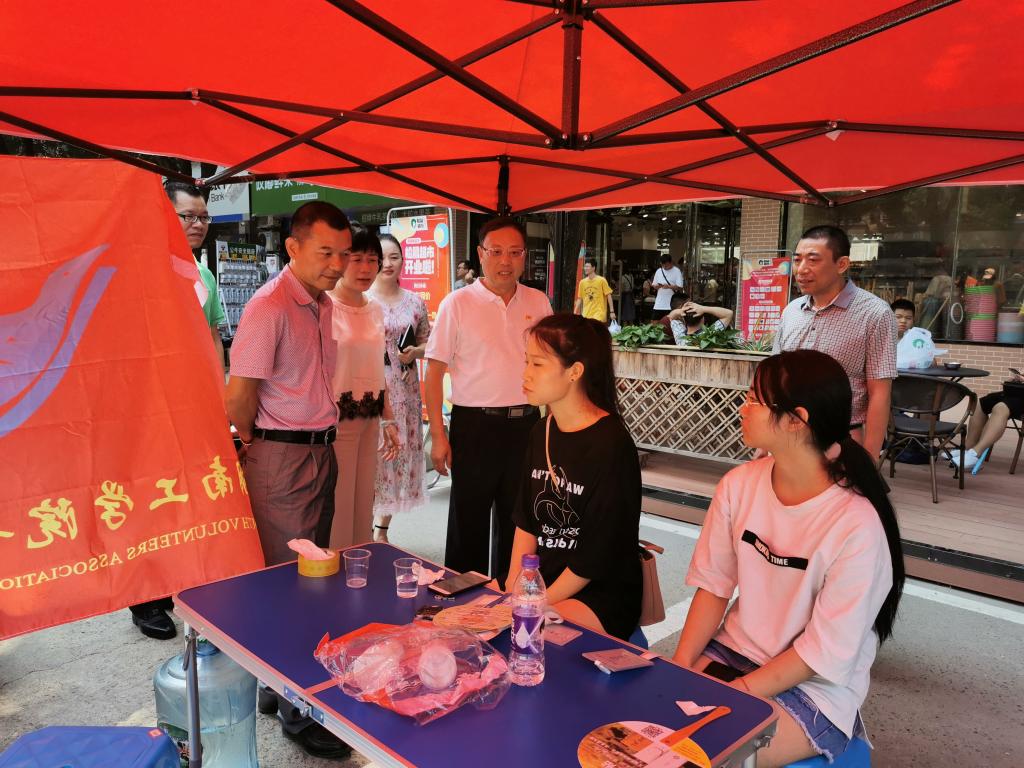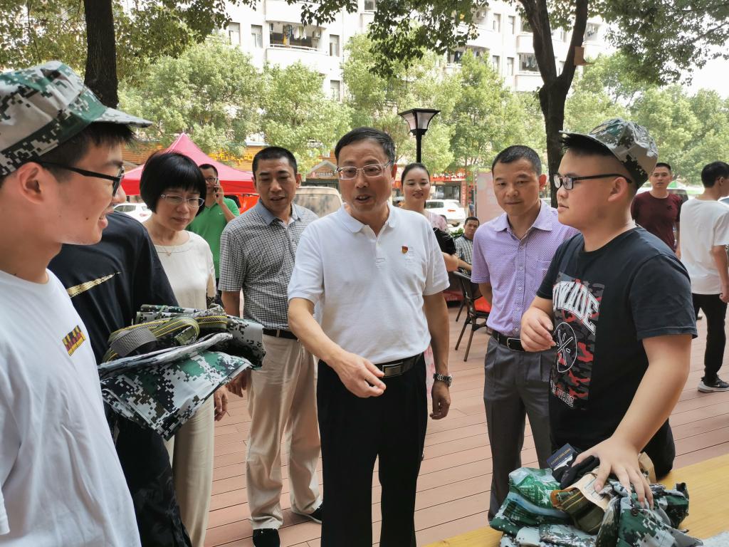 在宿舍楼外的志愿者服务点,谢国保走上前热情地与志愿者们打招呼,“衡阳群众青年志愿者们,你们辛苦了,天气炎热,一定要多喝水。”这时,迎面走来一群领军训服的新同学,谢国保语重心长地对新同学们说:“一定要尽快适应大学生活,刻苦学习,勤于思考,努力成为社会的栋梁之才。”