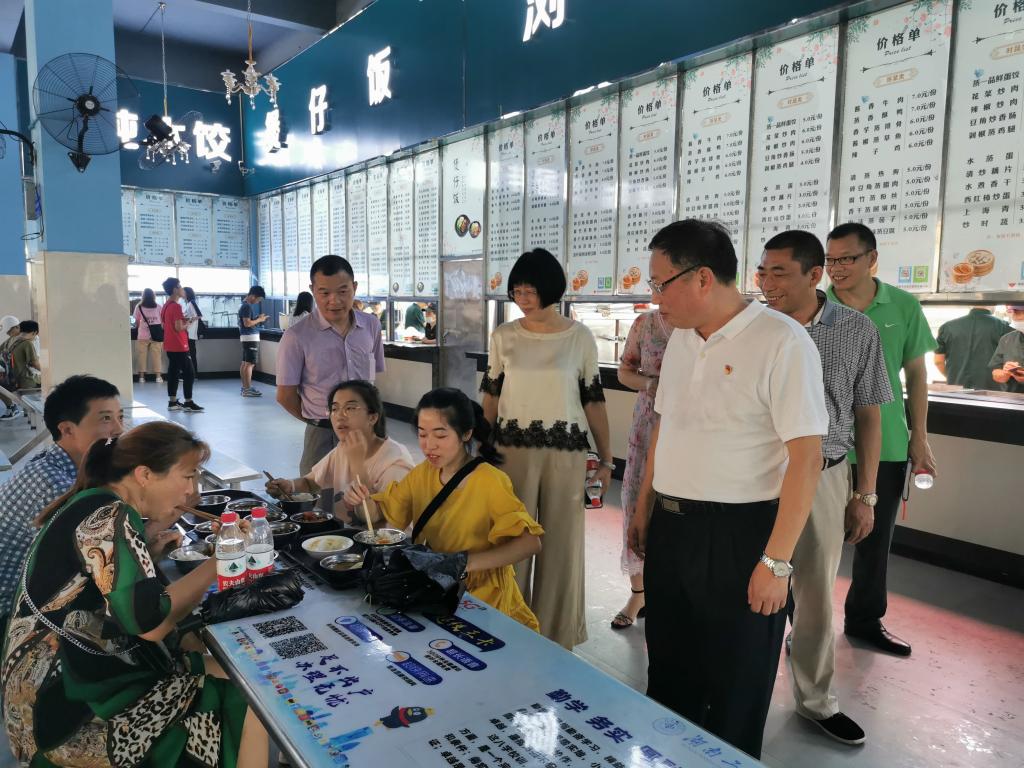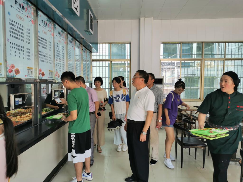 学生食堂一直是谢国保最为关心的地方,临近中午开餐时间,谢国保实地查看了餐厅、操作间、洗消间等场所,对食堂食品加工操作等环节进行了深入的了解,他要求食堂工作人员规范操作流程,及时排查食品安全隐患,坚决杜绝各类食品安全事故的发生。对前来就餐的新生及家长,谢国保走上前去与他们亲切交谈并耐心询问“饭菜好吃吗?对食堂工作人员的服务满意吗?”新生家长表示对学校细致周到的迎新服务感到贴心、舒心,把小孩放在这里读书感到安心、放心。