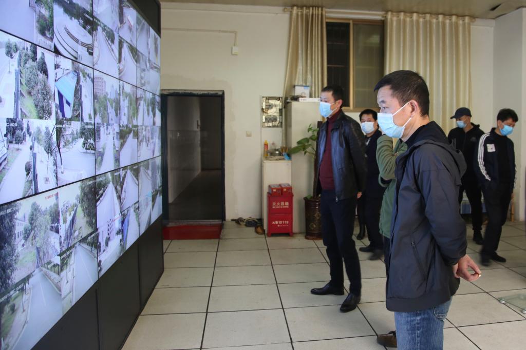 慰问完家属区的安保人员后,曹执令一行前往学校南门、监控室慰问安保人员,了解对学校入口、校园内及周边的防疫监控情况,后至校园西北角游泳馆,实地查看围墙等安全隐患整改工程施工进度,并要求相关施工单位确保在开学前完成对该区域的施工,完善校园封闭管理,保障师生健康和安全。