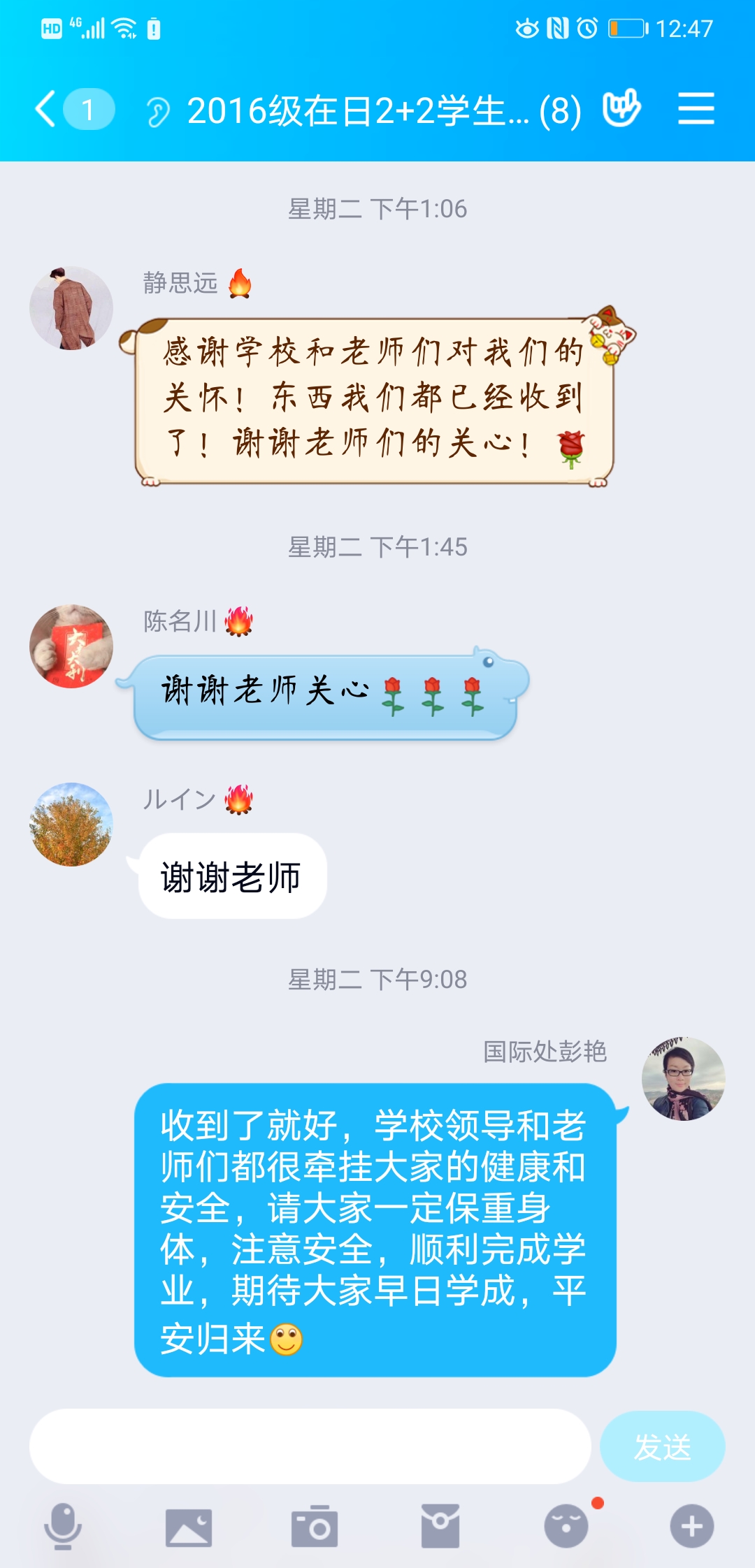 收到学校的“爱心包”、牵挂和关心,海外学子们非常感动,纷纷表示感谢母校的牵挂,疫情期间一定会保护好自己,克服困难,共渡难关。(国际合作交流处)