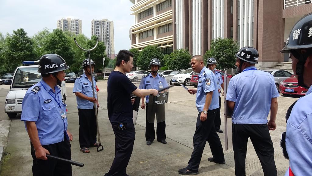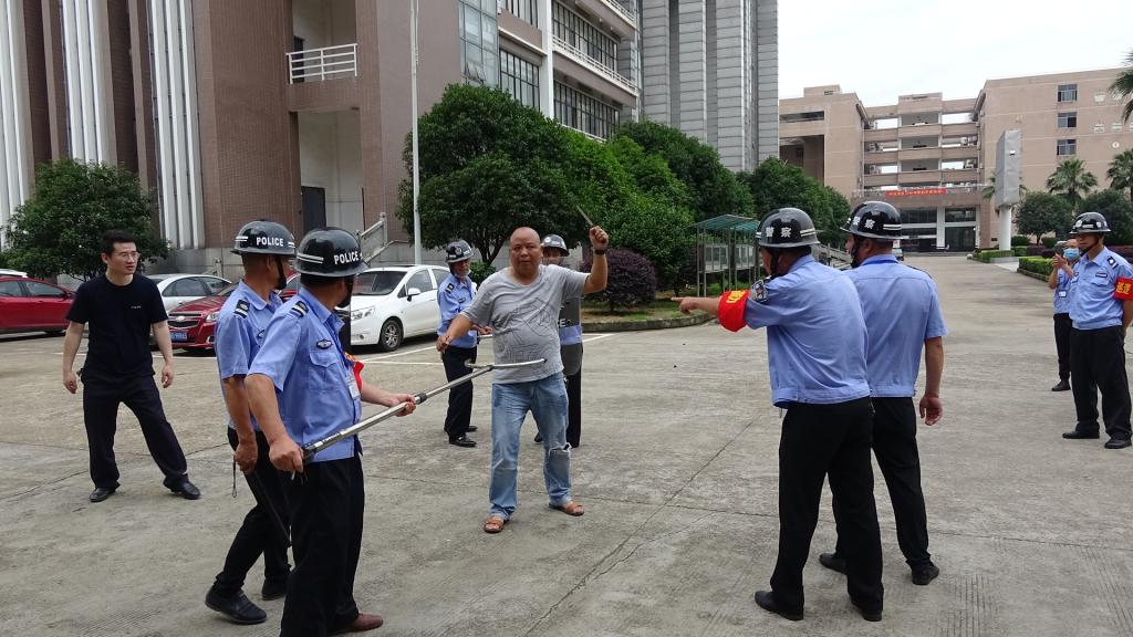 为加强应对突发暴恐事件的防范意识,提高面对暴恐事件的合理处、自护自救及有效逃生避险的能力,最大限度的减少因暴恐事件对师生造成的伤害,确保学校正常教学秩序和师生员工人身安全,努力实现“平安校园”的工作目标6月5日上午,保卫处组织保安队伍在计算机学院前坪举行反恐防暴技能培训和反恐演练活动。