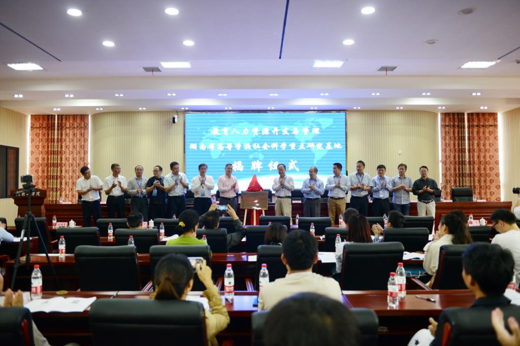 开幕式后,现场专家学者共同参与英国上市公司官网365“教育人力资源开发与管理湖南省高等学校社会科学重点研究基地”揭牌仪式。