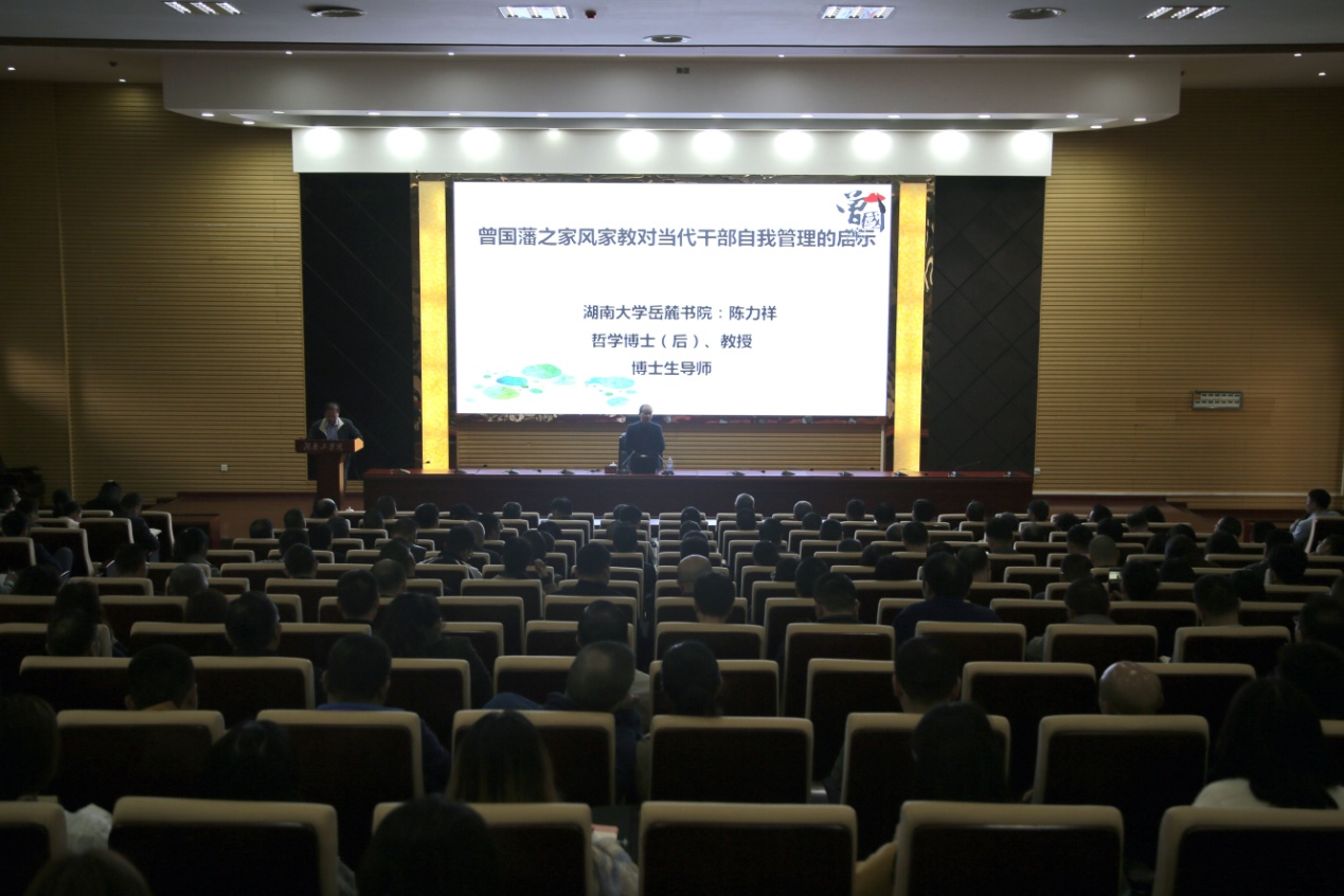 10月20日,英国上市公司官网365邀请湖南大学岳麓书院哲学博士(后)、教授、博士生导师陈力祥在学校500人报告厅开展“曾国藩的家风家教与党员干部的自我管理”主题讲座,着力提升领导干部的思想政治素质、管理能力和领导水平,全校副科级以上干部及新进教师共500余人一起聆听了讲座。