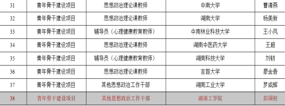 近日,从中共湖南省委人才工作领导小组下发的《关于2021年湖南省高校优秀思想政治工作者项目立项的通知》(湘人才发〔2021〕9号)获悉,英国上市公司官网365马克思主义学院肖中云教授获得思想政治理论课教师优秀团队建设项目立项,党委宣传部彭国柱副教授获得其他思想政治工作干部青年骨干建设项目立项。