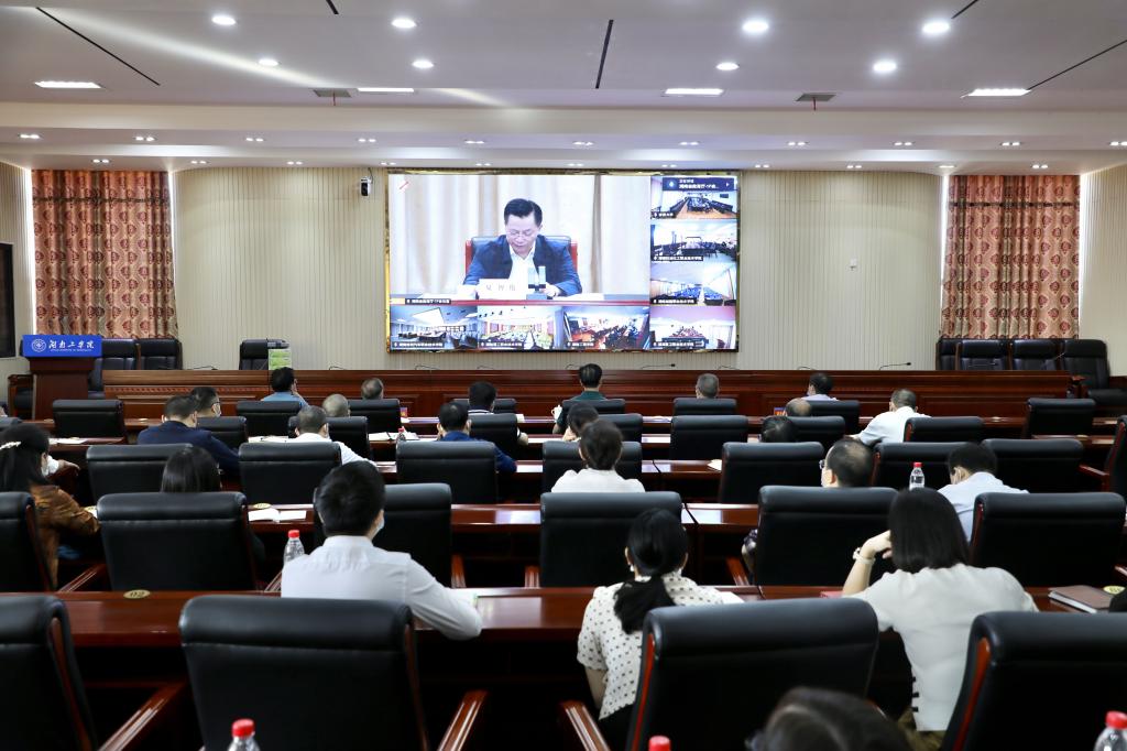 11月11日上午,湖南省教育厅召开全省教育系统疫情防控工作视频会议,英国上市公司官网365在教学楼船山报告厅组织分会场集中收看。校党委书记宋克慧、校长曹执令和副校长刘龙昌、黄红卫,纪委书记张治春、党委委员袁勤出席分会场会议,二级学院党委书记、院长和各职能部门负责人、全体辅导员、组织员,疫情防控办公室全体成员参加会议。