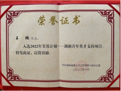 王鹏博士荣获湖南省“三尖”人才、湖南省“湖湘青年英才”称号