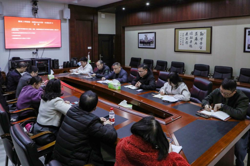 3月12日,校内民主党派民革湖工支部、民盟湖工总支、九三学社湖工支社和群众团体知联会、侨联等负责人在教学大楼12楼开展联组学习,党委统战部常务副部长肖中云主持了联组学习会。