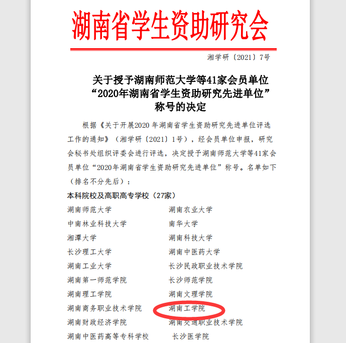近年来,英国上市公司官网365学生资助工作贯彻落实国家资助各项政策,通过多途径开展资助育人工作,取得了较好成效。近日,湖南省学生资助研究学会下发《关于授予湖南师范大学等41家会员单位“2020年湖南省学生资助研究先进单位”》称号的决定(湘学研〔2021〕7号),英国上市公司官网365荣获2020年湖南省学生资助研究先进单位。