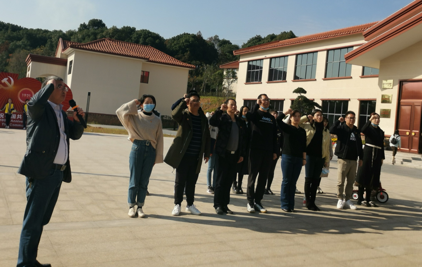 重温入党誓词。在衡阳市党史馆的宣誓广场上,支部书记曹毅带领支部全体同志重温入党誓词,“我志愿加入中国共产党,拥护党的纲领,遵守党的章程.....永不叛党”,誓言铿锵有力,字字句句无不体现着对党的无限忠诚。