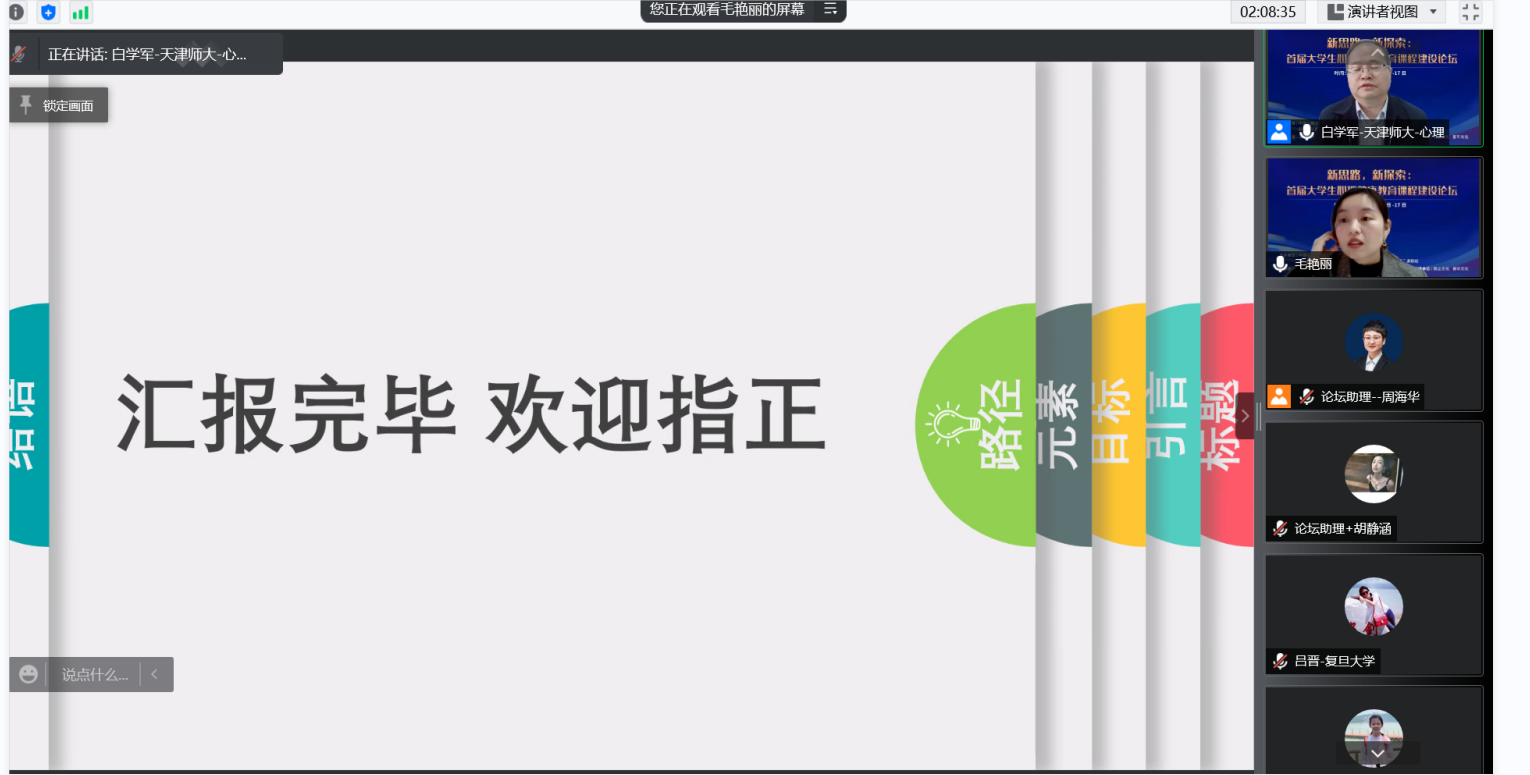 据悉,本次全国首届大学生心理健康教育课程建设论坛由中国心理卫生协会大学生心理咨询专业委员会、国家社科重大项目“国民心理健康素养及其提升机制与对策”课题组主办。大会主要研讨大学生心理健康教育课程建设的新思路和未来的发展路径,本次论坛中,来自北京、江苏、陕西、黑龙江、甘肃、新疆等25个省市的121名专家老师进行报告交流,超过1.6万人在线参与。首次实现在全国范围系统性呈现过去30多年专家学者们在高校心理健康教育领域的成果分享交流。