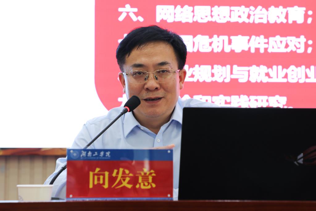 为进一步提升辅导员队伍专业化、职业化水平,5月13日下午,辅导员素质能力提升专题培训在教学大楼12楼报告厅举行。湖南师范大学学生工作部部长向发意担任培训主讲,学生工作部部长曹毅主持培训。