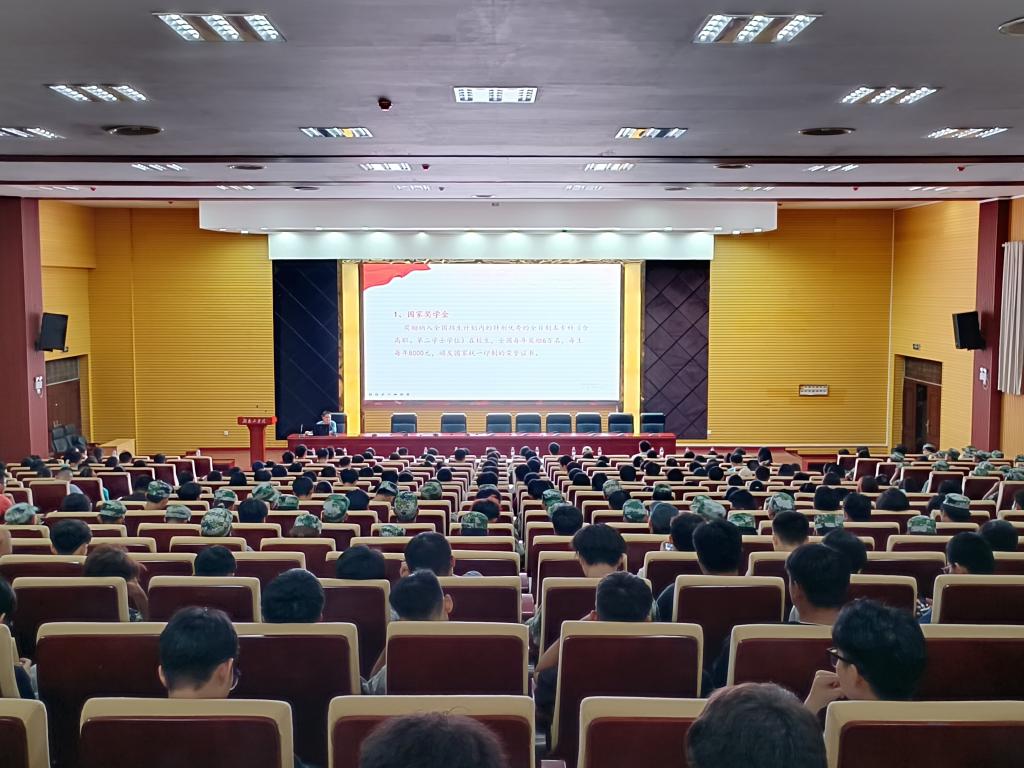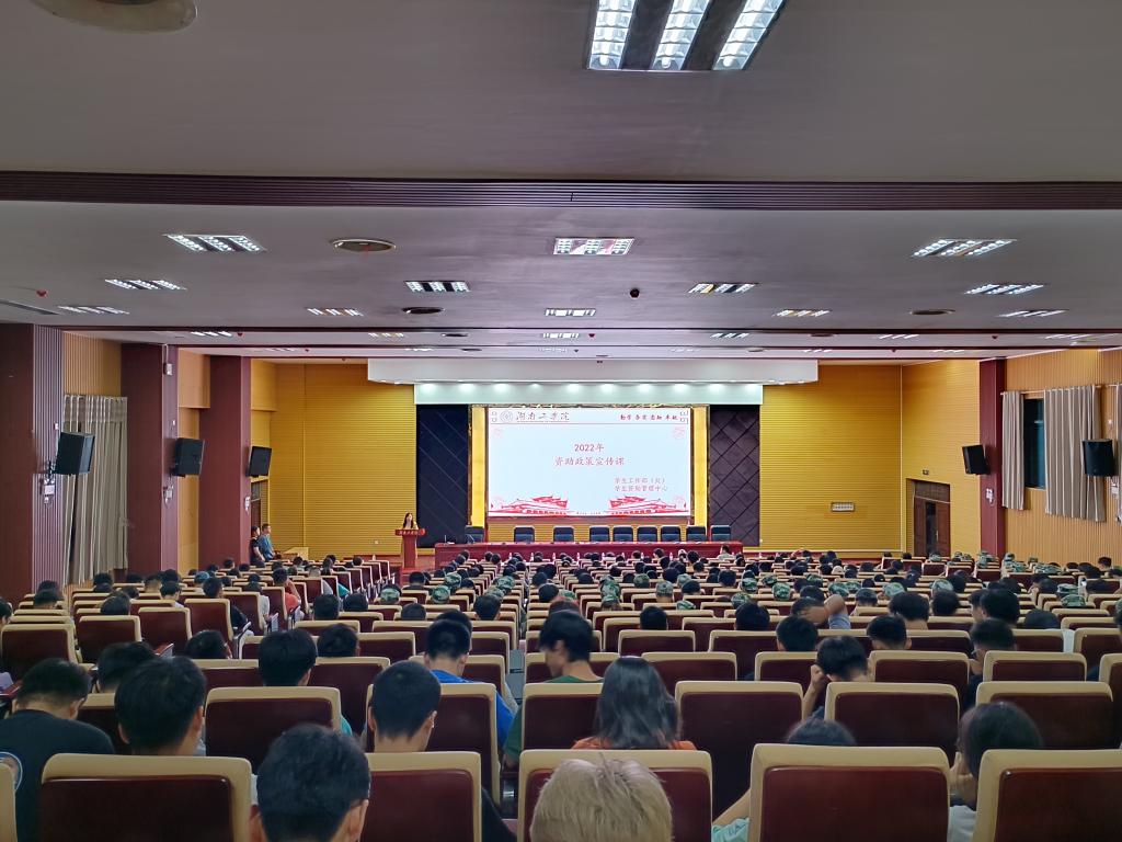 宣讲活动分为两个阶段,第一阶段是资助政策宣讲,校资助管理中心主任袁野从资助体系、资助项目、申请条件以及政策依据等方面进行了详细讲解,并从防范校园贷、金融风险等方面进行了警示教育。第二阶段是组织收看报告会。与会全体师生观看了湖南省2022年普通高校和中等职业教育国家奖学金获得者优秀事迹报告会专题片。