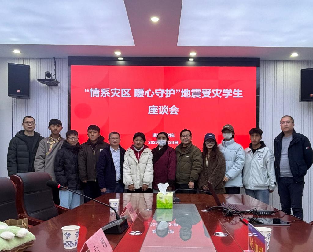 2月24日,学校召开“情系灾区,暖心守护”受灾学生座谈会学生工作部部长曹毅、副部长周燕斌、尼加提·阿布都热西提,少数民族预科教育部主任贺新华,学生工作部相关老师及西藏受地震灾害学生等参加本次座谈会。