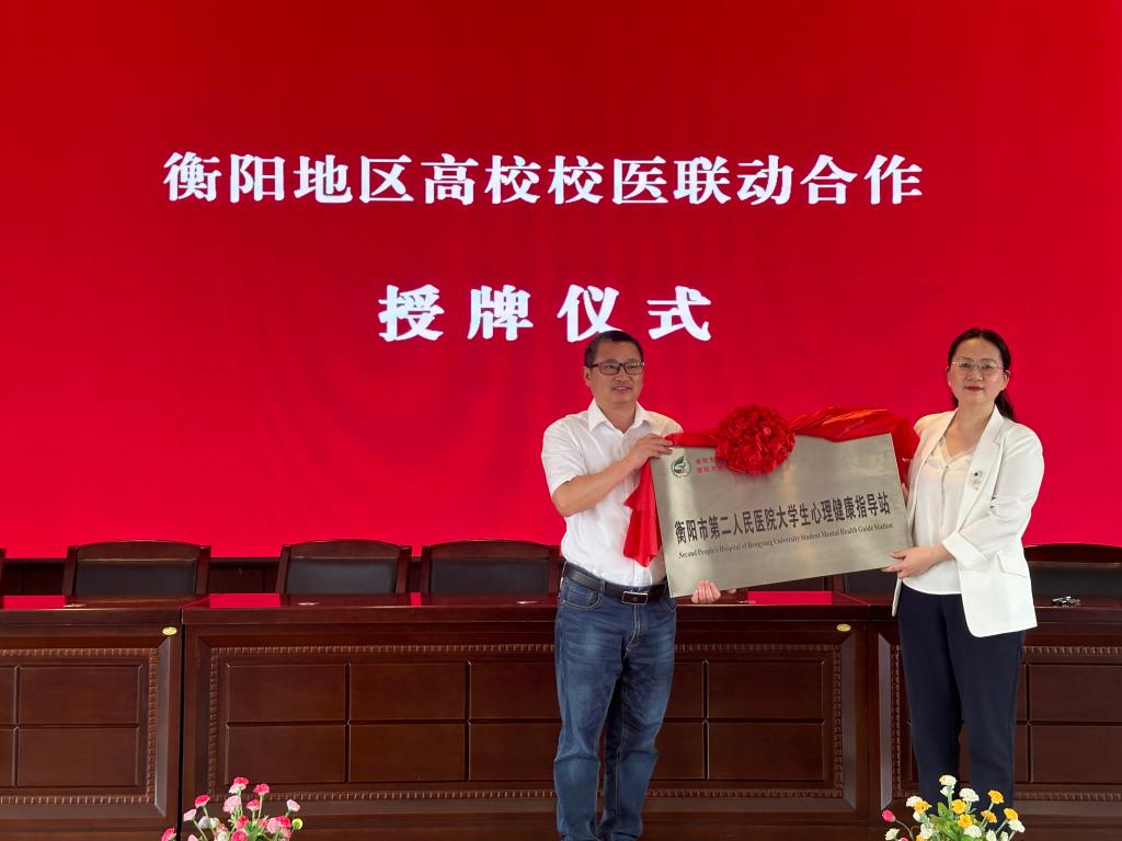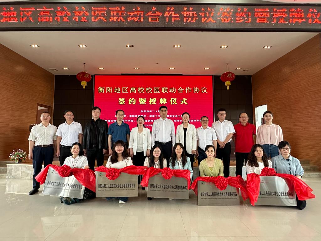 随后,各高校分别与衡阳市第二人民医院签署医校合作协议,并共同为高校大学生心理健康教育指导站揭牌。