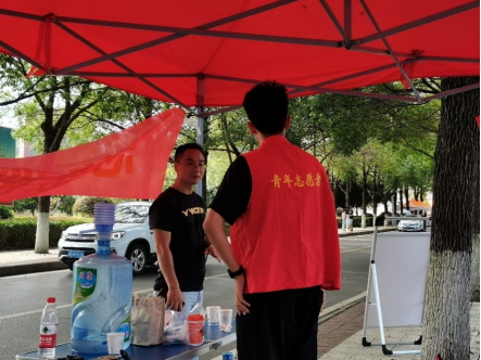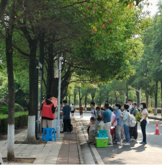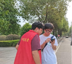 烈日炎炎下志愿者们依旧坚守岗位,服务新生