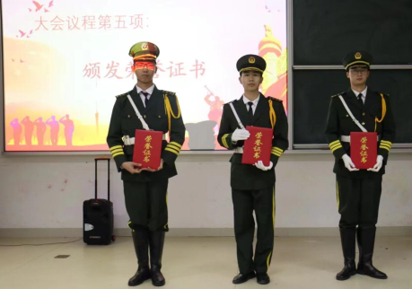刘叶青为廖炜平等3名国旗队员颁发“优秀国旗手”荣誉证书,并作总结发言。她指出,第八届国旗队全体队员辛勤付出,圆满完成了学校重大活动的升旗任务,充分展现了队员们不妥协、不服输的刚强意志和不怕苦、不怕累的工作作风,希望在以后的工作、生活、学习中继续坚守初心,发扬光大。