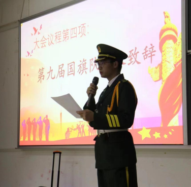 曾敏代表第九届国旗队发言:“...我们将不忘使命,砥砺前行,用实际行动捍卫国旗尊严,维护国旗队的荣誉,以更优秀的表现展现英国上市公司官网365国旗队的风采!”