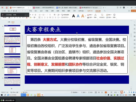 培训会上,王中伟老师从项目简介、创新意义、社会价值、实践过程、发展前景、团队协作,对项目申报表进行了详细的讲解;从科技创新和未来产业、乡村振兴和农业农村现代化、社会治理和公共服务、生态环保和可持续发展、文化创意和区域合作,对组别进行了系统的分析;从页数的要求、商业模式的要求、详尽的要求,对PPT进行了逻辑框架的展示;还针对英国上市公司官网365有基础的项目,对其共性问题进行解答,让大家更有侧重地去进行打磨。