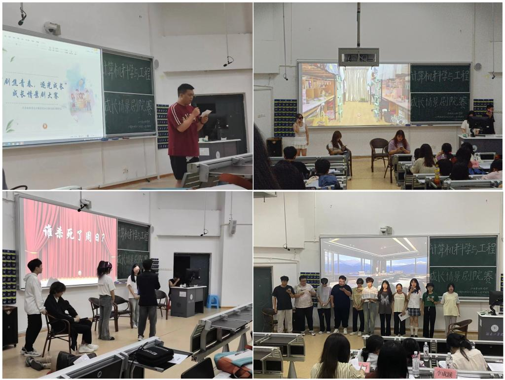 举办一场情景剧。4月29日,计算机科学与工程学院在信息楼3209教室举办了第四届“剧焦青春,逐光成长”大学生成长情景剧院级选拔赛。本次共有13支队伍参赛,剧目以反校园霸凌、反电信网络诈骗、青年成长的烦恼与困惑为主题,以场景表演、情景对话的方式呈现,引导学生遵纪守法,树立正确的人生价值观。主题鲜明的故事呈现成长的烦恼,贴近生活的情节引人共鸣,真挚动人的表演发人深省。