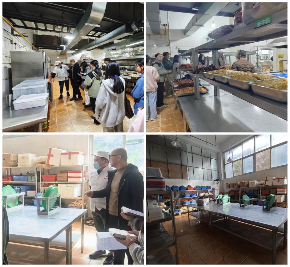在食堂后厨,巡查小组针对食品加工问题及餐具清洗问题展开了多方面的详细勘查,如:刀具、案板等厨具是否依据菜品类别进行分类使用;碗具清洁机是否正确使用、是否定期清洗等,时刻坚守“食品管理关”。