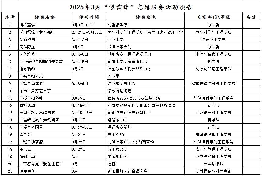 【活动预告】2025年3月“学雷锋”志愿服务活动预告
