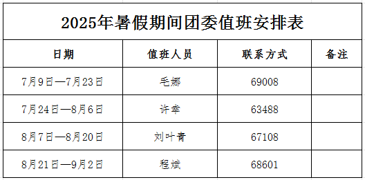 2025年暑假期间团委值班安排表