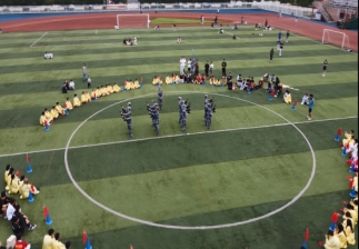 从空中俯瞰,姿态优美,自然灵动,扑闪着湖工的底气与朝气。刚柔交济的龙身蛇形太极拳,整齐划一的枪操演练,气势强劲的跆拳道格斗,动感十足的舞蹈表演,诗情画意的汉文化展示相互烘托,气氛融融。