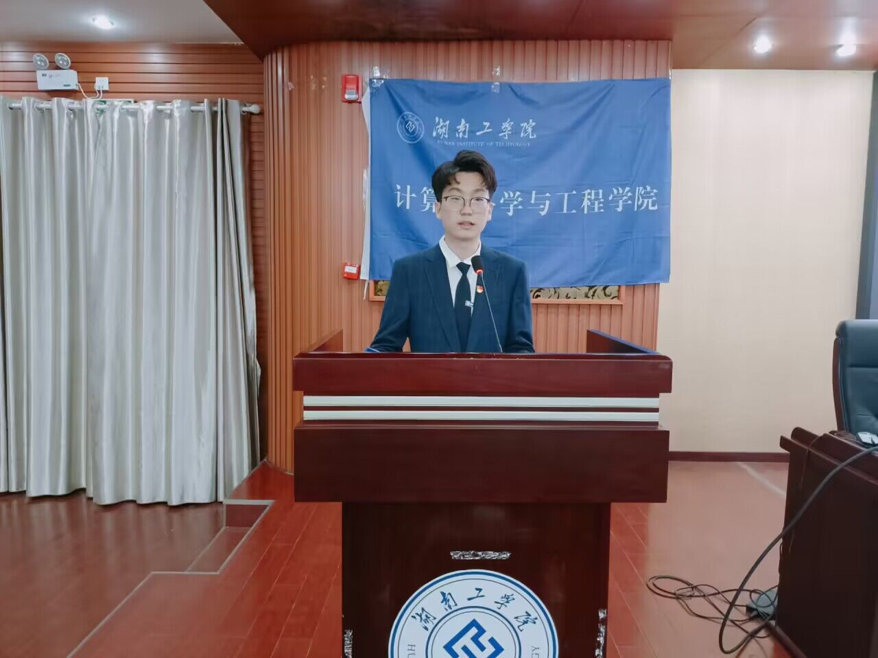 第十六届团委学生会执行主席朱森林做了就职报告
