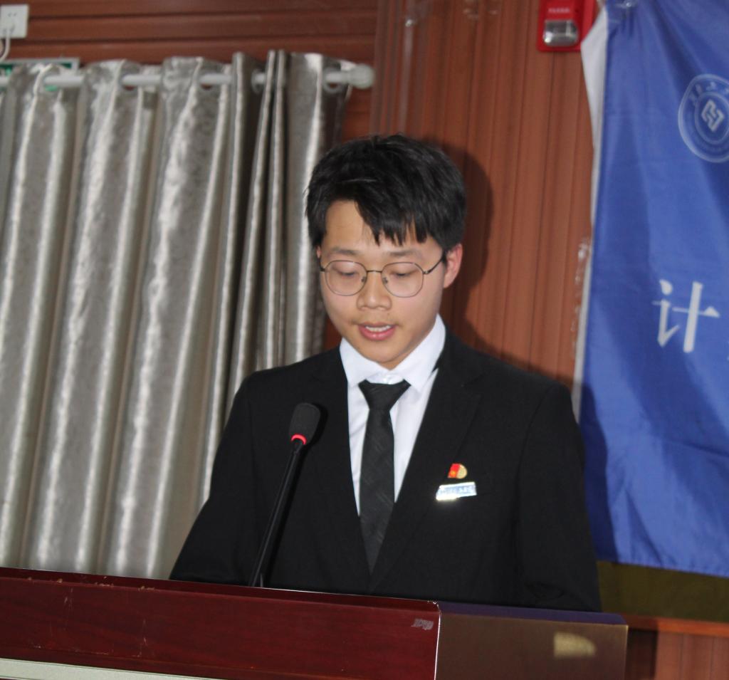 团委学生会换届交接仪式后,第十六届团委学生会执行主席朱森林做了就职报告,并由第十六届团委学生会团委副主席黄鸿章带领团委学生会全体成员宣誓