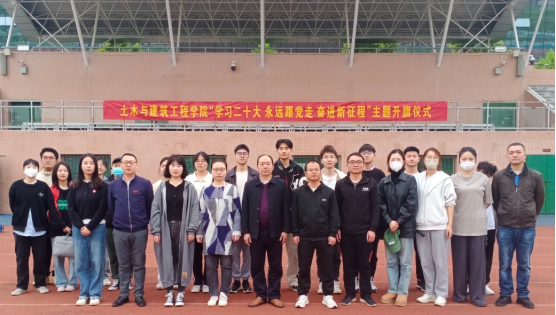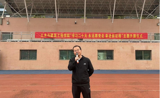 2023年4月10日清晨,土木与建筑工程学院在北运动场举行“学习二十大 永远跟党走 奋进新征程”主题升旗仪式,院长游春华、院党委副书记郭范波、组织委员欧学阳、全体辅导员及全体学生参加,升旗仪式由学工办主任兼分团委书记刘佳林主持。