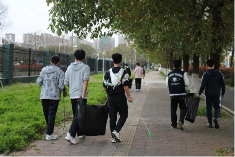 在校园周边的公共区域,同学们弯腰捡拾垃圾,分类废品,整理公物,不一会儿操场就变得干干净净。他们积极践行文明理念,共同营造干净整洁的校园周边环境。