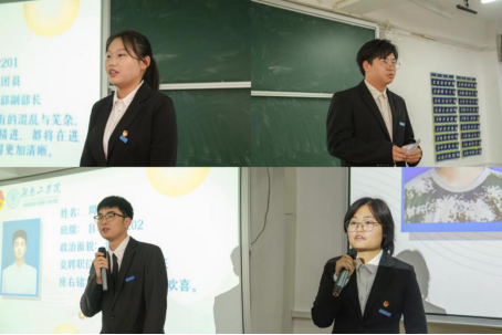 会议现场,参赛选手们身着正装,胸前戴佩戴团徽和校徽,从容不迫走上讲台。在属于他们自己的三分钟内,讲述了自己在团委学生会工作一年期间的所感所想,所悟所思,以及对未来工作的规划,更多的是表达对团委学生会的感激之情。