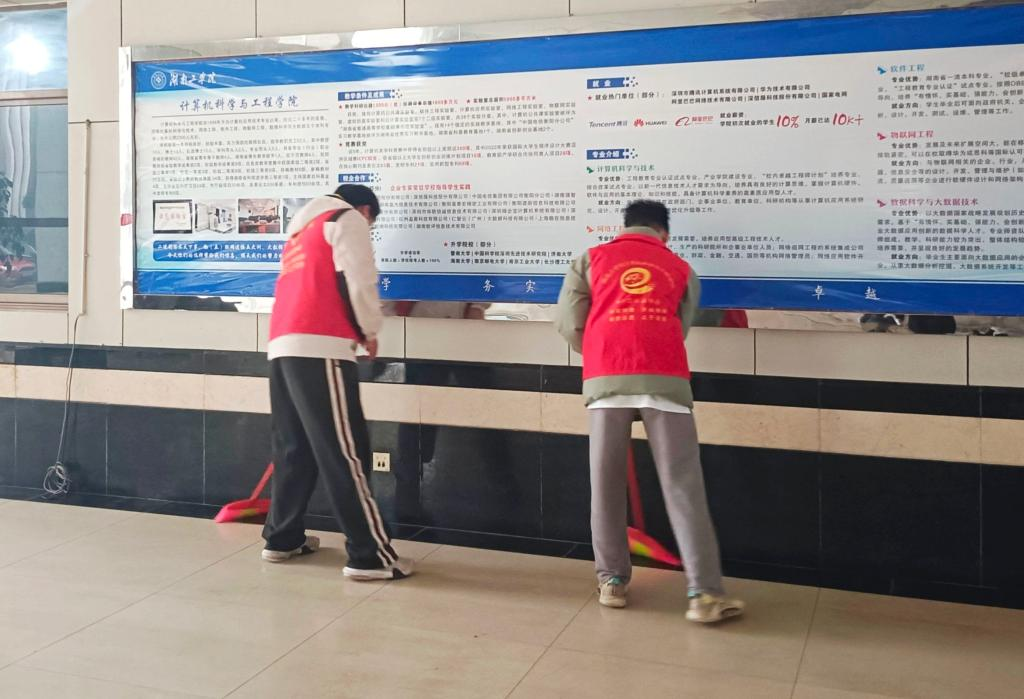 为进一步弘扬雷锋精神和“奉献、友爱、互助、进步”的志愿者精神,助力文明校园创建。3月5日下午,“湖小青”计算机科学与工程学院分会——e小芯青年志愿者协会的志愿者们在信息楼开展“湖小青”志愿者活动系列活动之“学雷锋,爱校园”志愿清扫活动。