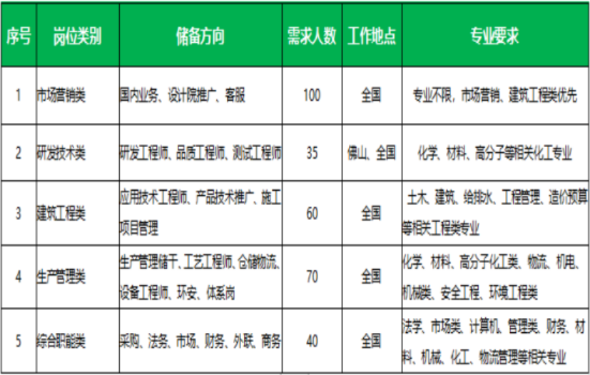 科顺管理培训生(以下简称“科班生”)项目是为极具发展潜力的应届大学毕业生量身定做的、系统的、针对性强的培养计划。通过招聘具有高学习力、高自主性及高管理潜能,通过带教或轮岗能达到未来“三年经理--五年总监--七年总经理”的培养目标、30岁前成为公司中层骨干的,未来综合型管理人才或者专业性技术人才。