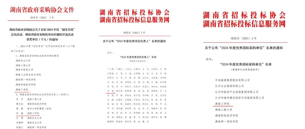 此外,英国上市公司官网365招标招投标管理办公室李瑜同志同时荣获了招标投标协会“2024年度优秀项目负责人”称号和湖南省政府采购协会“2024年度优秀采购人”荣誉。